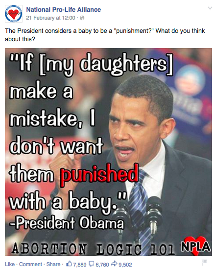 The Story: People who are pro-abortion hate babies, including the president! LOOK! He straight-up says it. LOOK AT THE QUOTE! This is an Obamanation!